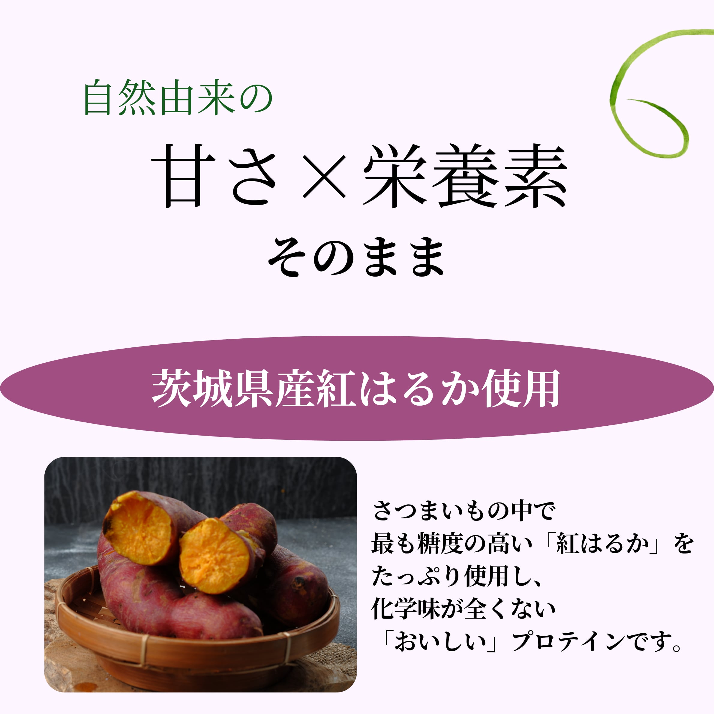 茨城県産のさつまいもを使った、自然の恵みをそのまま味わえるプロテイン。